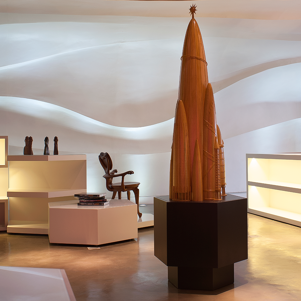 Concept and space design of a tourist attraction devoted to the architect Antoni Gaudí, including exhibition space, 4D cinema and shop, in Barcelona. Floor area: 2.000 m2.